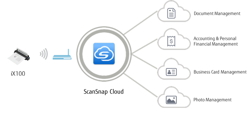 iX100 內建 Wi-Fi模組,掃描後的資料可由 iX100直接傳送至智慧型行動裝置,即使是在外出時或沒有網路基地台時亦可。
